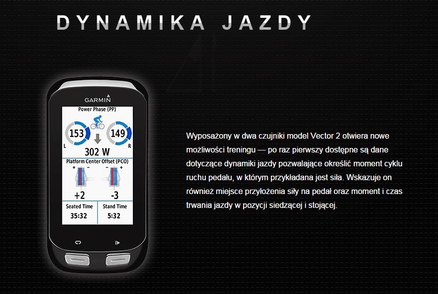 Nowość stanowi także zliczanie parametrów związanych z dynamiką jazdy, w tym m.in. czas trwania jazdy w pozycji siedzącej i stojącej. Funkcja pomiaru dynamiki jazdy działa tylko w wersji pełnej (nie jest dostępna w modelu Vector 2S)