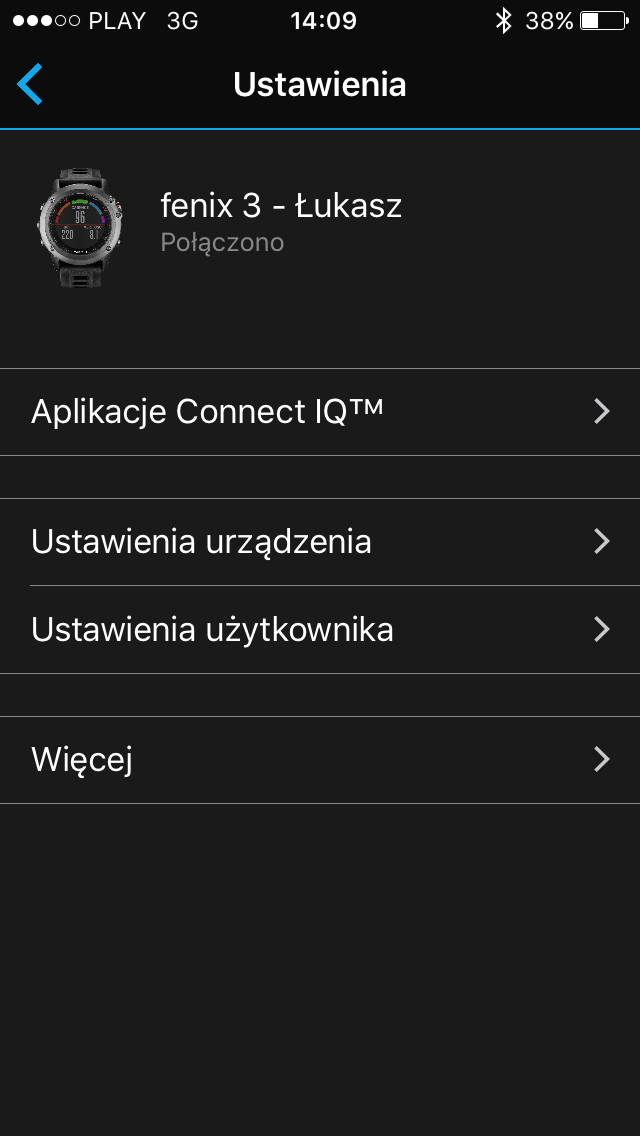 - Z listy urządzeń wybieramy zgodny zegarek, w naszym przykładzie jest to fenix 3: