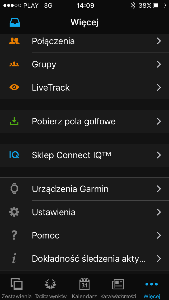 - Uruchamiamy aplikację mobilną Garmin Connect Mobile. Rozwijamy listę opcji i wybieramy pozycję Urządzenia Garmin: