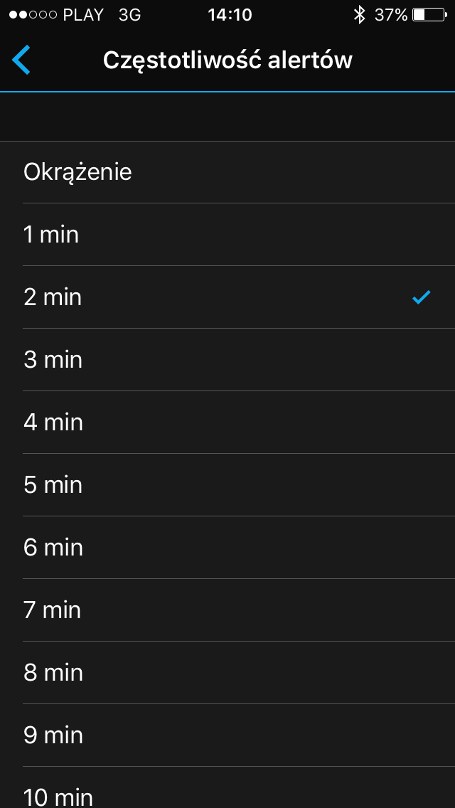 - Do wyboru mamy trzy typy alertu tempa/prędkości i co ważne możemy także zdefiniować częstotliwość powiadomień: