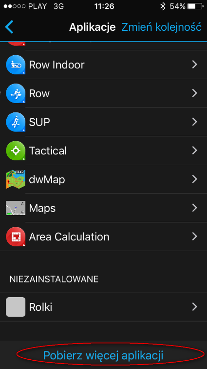 W tym miejscu możemy zarządzać aplikacjami zainstalowanymi w pamięci zegarka Fenix 3. Przesuwamy się na dół listy i wybieramy „Pobierz więcej aplikacji”