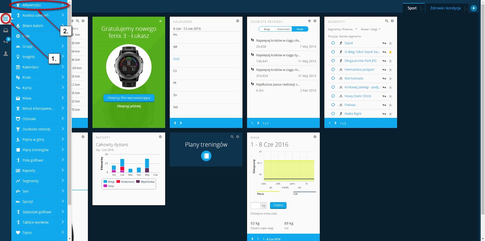 Pierwsza czynność jaką należy wykonać to przesłanie danych z zegarka czy licznika Garmin do portalu Garmin Connect. Aktywności można przesyłać bezpośrednio do komputera (w tym przypadku wykorzystujemy program Garmin Express) lub do zgodnego telefonu w którym zainstalowano wcześniej aplikację Garmin Connect Mobile.