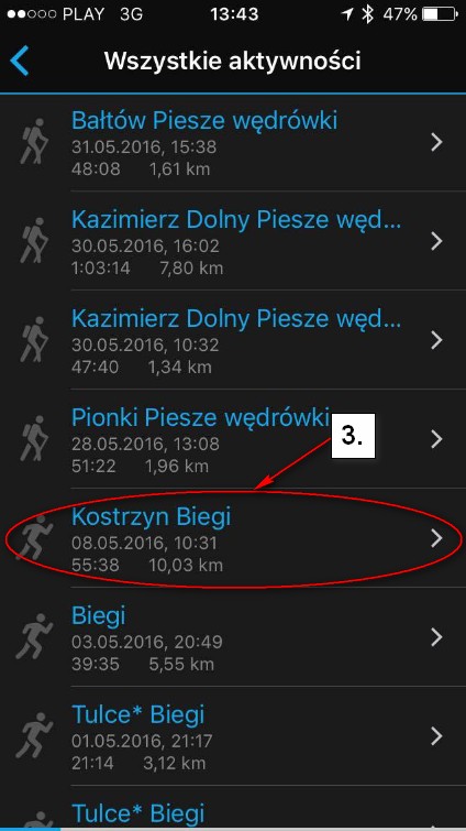 Procedura udostępniania aktywności z poziomu aplikacji mobilnej Garmin Connect Mobile