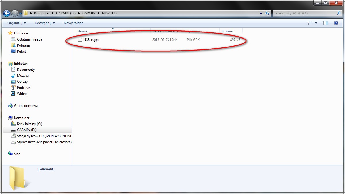Instrukcja przesyłania pliku GPX do GPS Garmin poprzez komputer